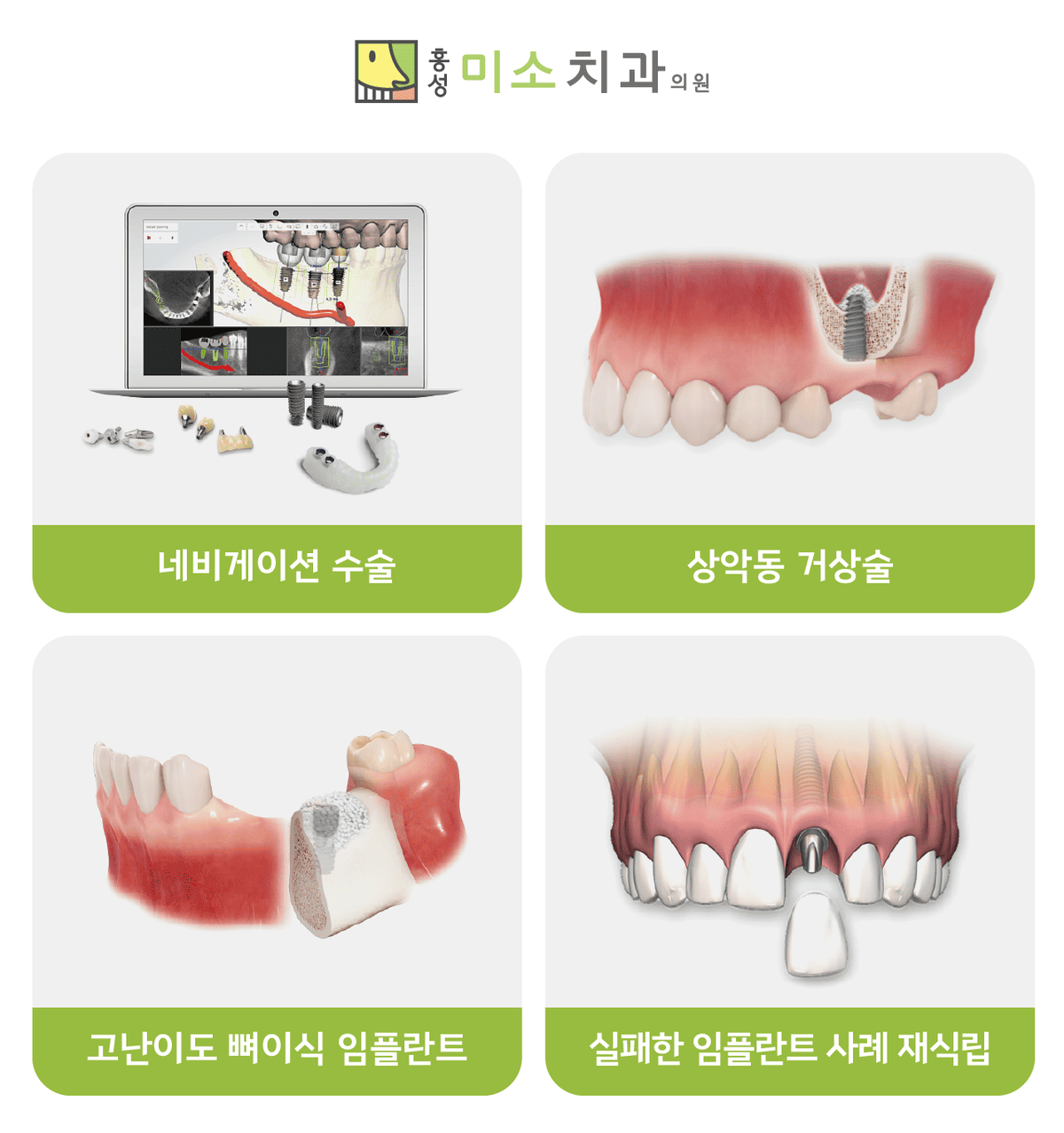 홍성미소치과의원항상 진심을 다하는, 홍성 미소치과입니다. 소개 전화 톡톡상담 오시는길 홍성미소치과의원항상 진심을 다하는, 홍성 미소치과입니다. 전화 오시는길 블로그 홍성미소치과의원 항상 진심을 다하는, 홍성 미소치과입니다. 소개 오시는길 홍성미소치과의원 충청남도 홍성군 홍성읍 내포로 12 삼일빌딩 3층 지도에서 보기 이용시간 평일 : 09:00 ~ 19:00(점심시간 오후 1시 ~ 오후 2시)토요일 : 09:00 ~ 13:00일요일 : 휴무 전화번호 041-631-2829 인사말씀 홍성미소치과의원 의료진 소개 홍성미소치과의원 의료진 오시는길 홍성미소치과의원 위치 안내